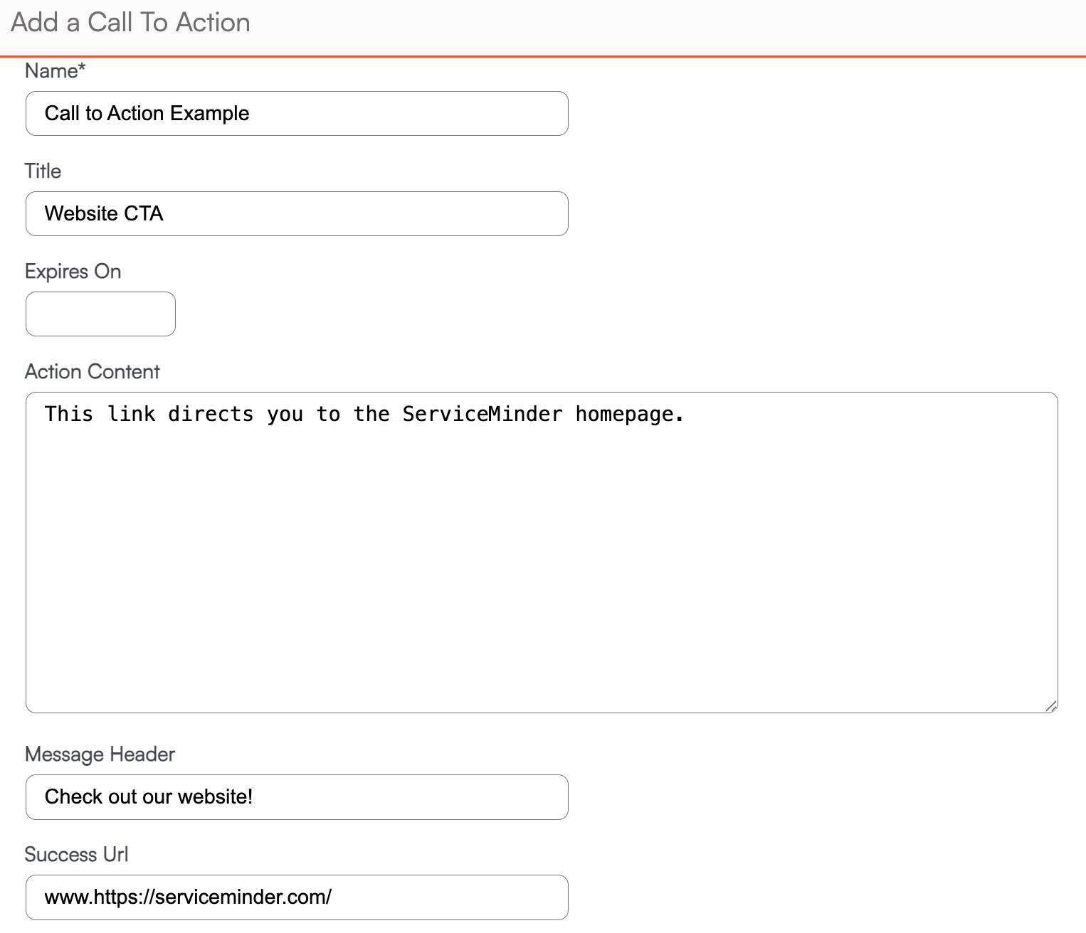 ServiceMinder's Call-to-Action feature allows you to create as many call-to-actions as you'd like, then send them to any contacts - either through email campaigns or pretty much any email or text message you send out.