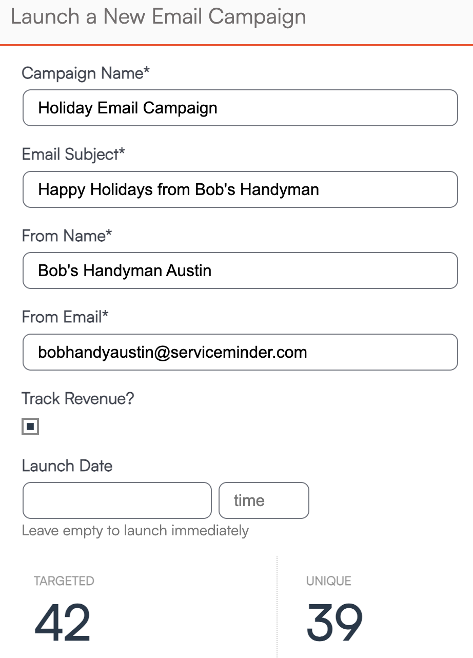 After clicking Launch Campaign, you’ll be taken to the campaign setup screen. This may take a moment as serviceminder builds the recipient list.