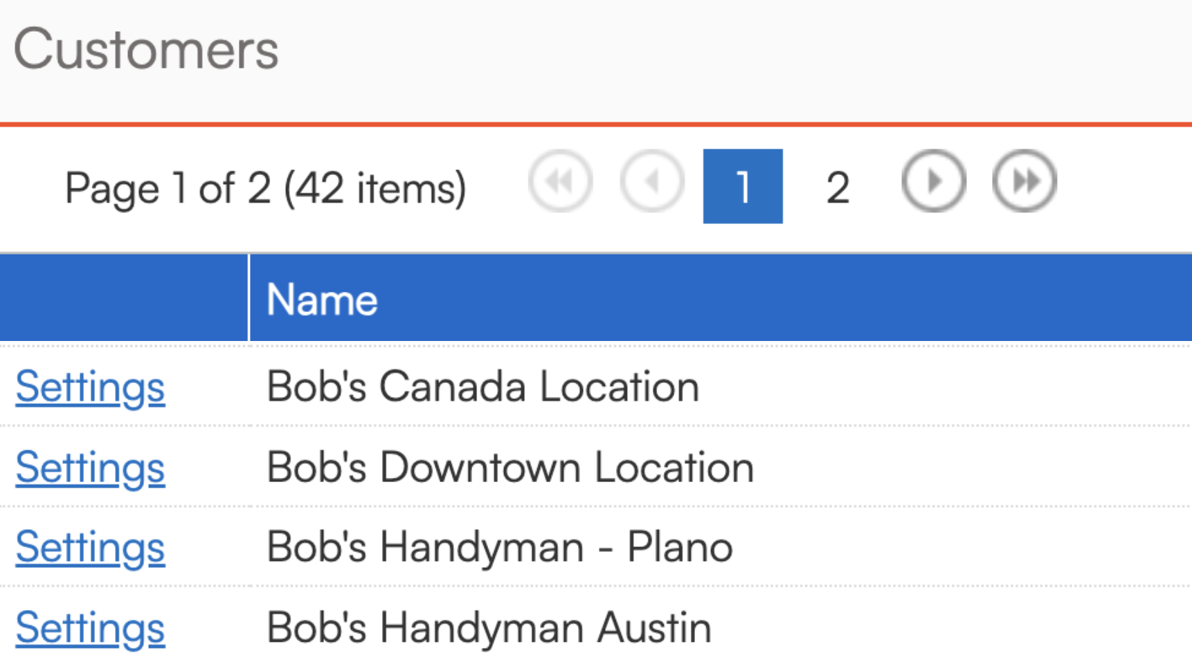 This is a list of the organizations that can purchase from the store. These would be your franchisee locations.