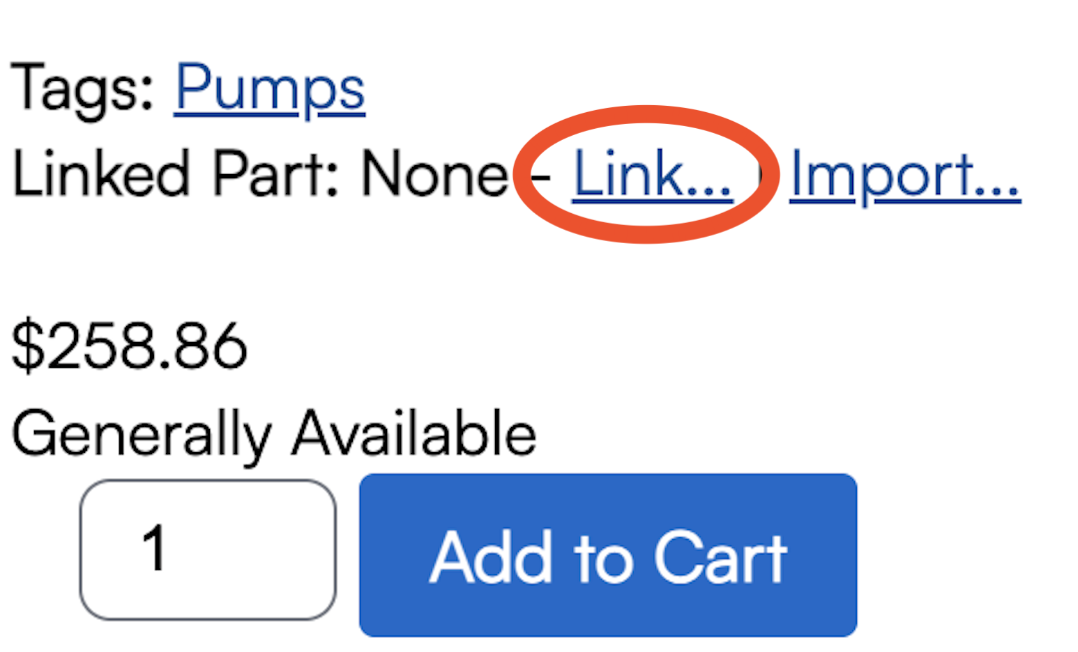 - Pricing* - this is the set price that will show to the customer if they select this part; you can also set up Pricing Bands as you would for a part