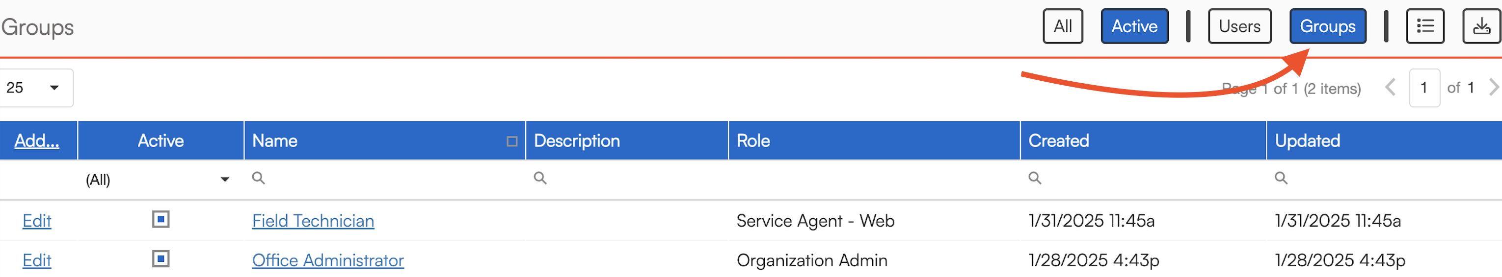 Click Edit next to an existing role to modify its name or permissions.