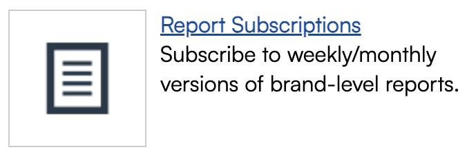To configure Report Subscriptions at the brand level, navigate to Dashboard > Tools > Performance > Report Subscriptions.