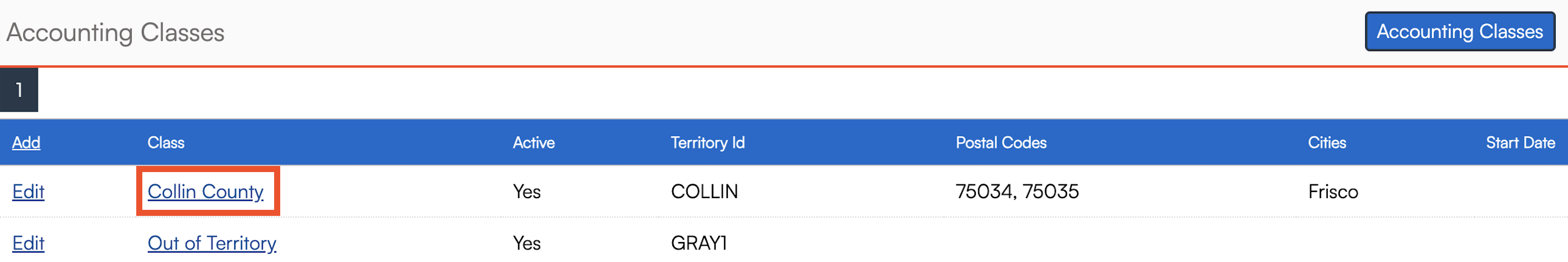 If one franchise owner manages multiple territories with different agreements, override the brand settings at the Accounting Class level: