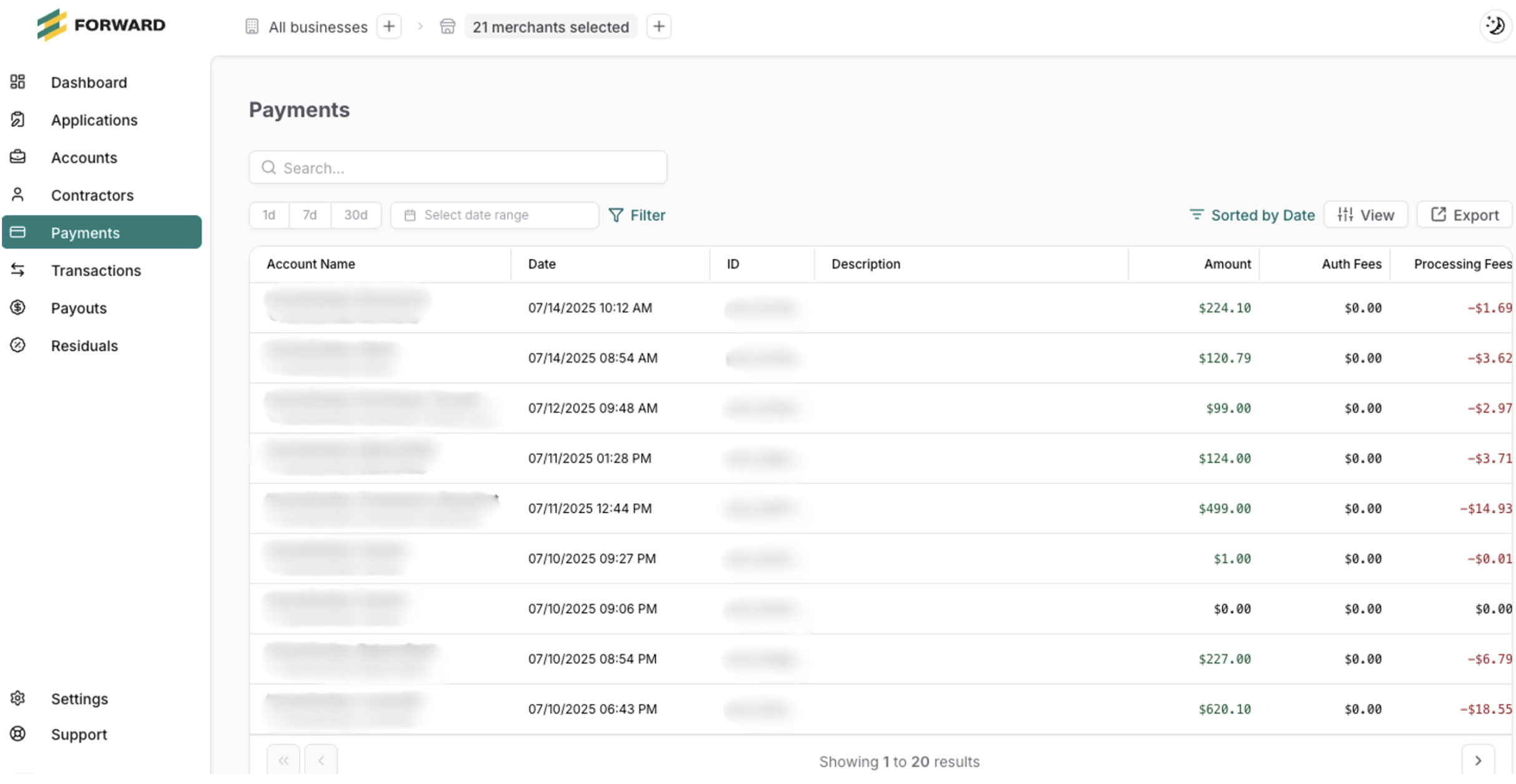 - ⚠️ If you see disputes or chargebacks: Contact Forward or your implementation team immediately.