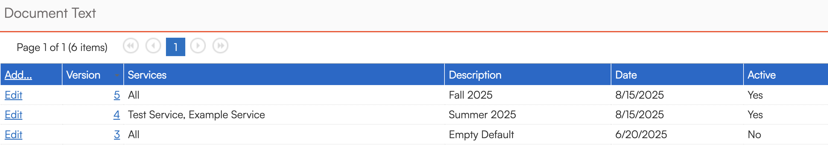 The terms are version-controlled, so new versions are created with each edit. When a proposal is accepted, the proposal text that was in place at the time of acceptance is locked (so new terms won't apply to older, already accepted proposals.) Changes to terms will apply to open and new proposals.