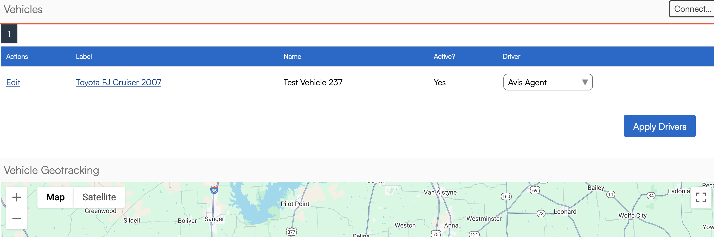 If you are integrating information that has already been created in a vehicle tracking tool, they should carry over and automatically appear with the labels and names that you created. You just need to select the Driver from the drop down list of Service Agents then click the Apply button.
